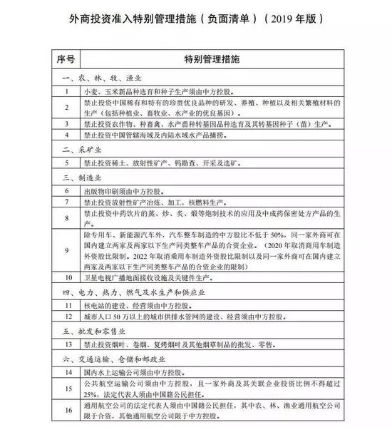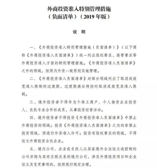 《外商投资准入特别管理措施(负面清单)(2019年版)》⬇