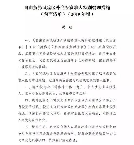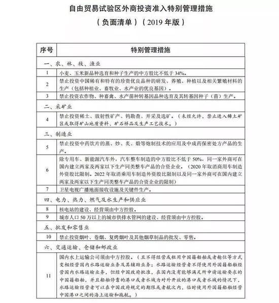 《自由贸易试验区外商投资准入特别管理措施(负面清单)(2019年版)》⬇