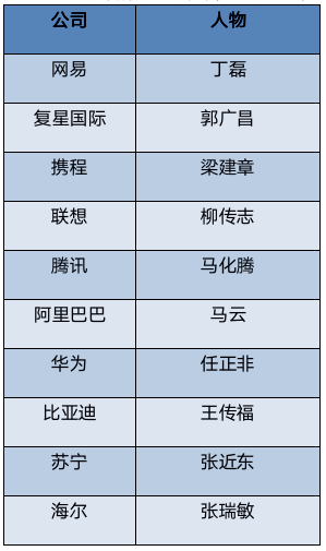 华为任正非、阿里巴巴马云、比亚迪王传福等企业家位列榜单,这些企业近年来的国际化步伐也有目共睹。