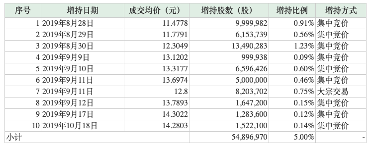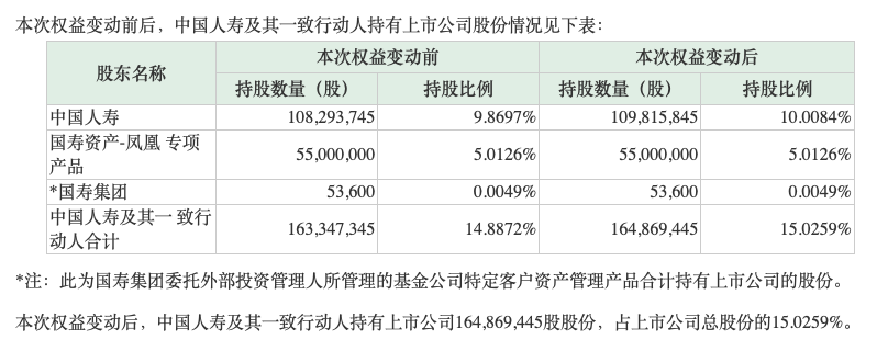 公告显示,中国人寿此次增持采取二级市场集中竞价方式,增持均价为14.28元/股。以增持股份数及均价计算,合计耗资约2174万元。