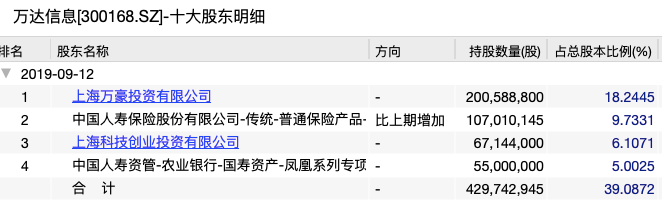 转让后,万豪投资对万达信息的持股比例从23.25%降至18.24%,而中国人寿及其一致行动人对其持股约5%,跃升为公司第四大股东。此前,中国人寿方面未持有万达信息股份。
