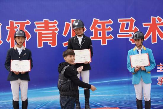 图:无锡阳山马术学府总经理唐红为获奖骑手颁奖