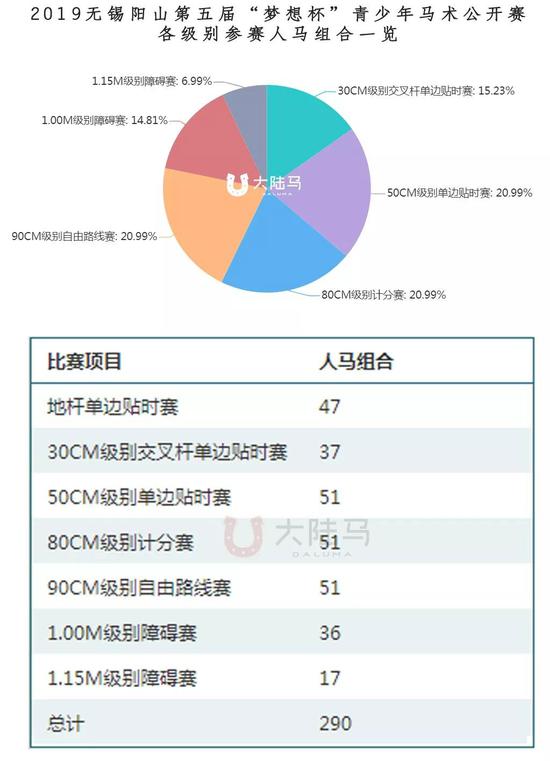 通过这次参赛的项目和人马组合可以看出,有多达89匹马、290对人马组合进行了7各项目的比拼。可以看出,50CM、80CM、90CM三个级别的参赛人马组合占比最高,能够参加这几个级别的骑手,继续向上挑战更高的高度可能性都很大,这无疑会极大的增加未来全国各个赛场上马术竞赛人口数量。相信,未来越来越多的马术赛场新星都有过“梦想杯”的征战经历。