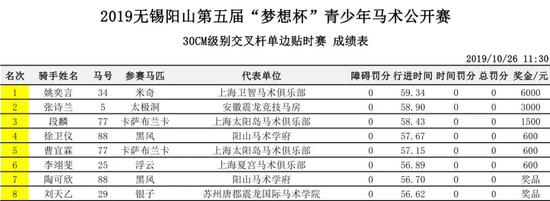 在30CM级别交叉杆单边贴时赛中,上海卫智马术俱乐部的小骑手姚奕言策骑“米奇”夺冠,斩获6000元冠军奖金。