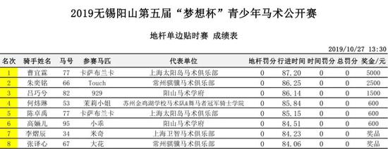 在地杆单边贴时赛中,上海太阳岛马术俱乐部小骑手曹宜霖策骑“卡萨布兰卡”夺冠,冠军奖金5000元。