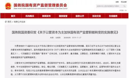 11月27日,国务院国资委印发《关于以管资本为主加快国有资产监管职能转变的实施意见》(以下简称《实施意见》),明确了管资本要管什么、怎么管,为加快推进国资委职能转变绘制了路线图。