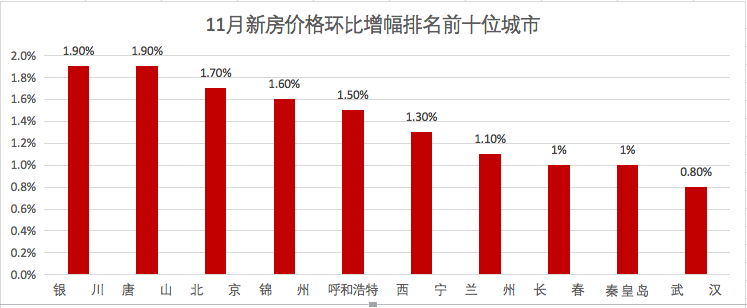 国家统计局数据显示,11月新房房价上涨城市再度减少6城至44个,为年内最低。
