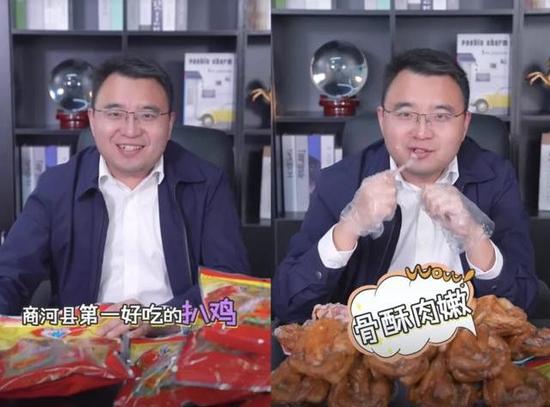 近日,山东商河县副县长王帅在直播中推销当地特色产品扒鸡,并挑战“大胃王”,一口气在直播中吃掉4只扒鸡。