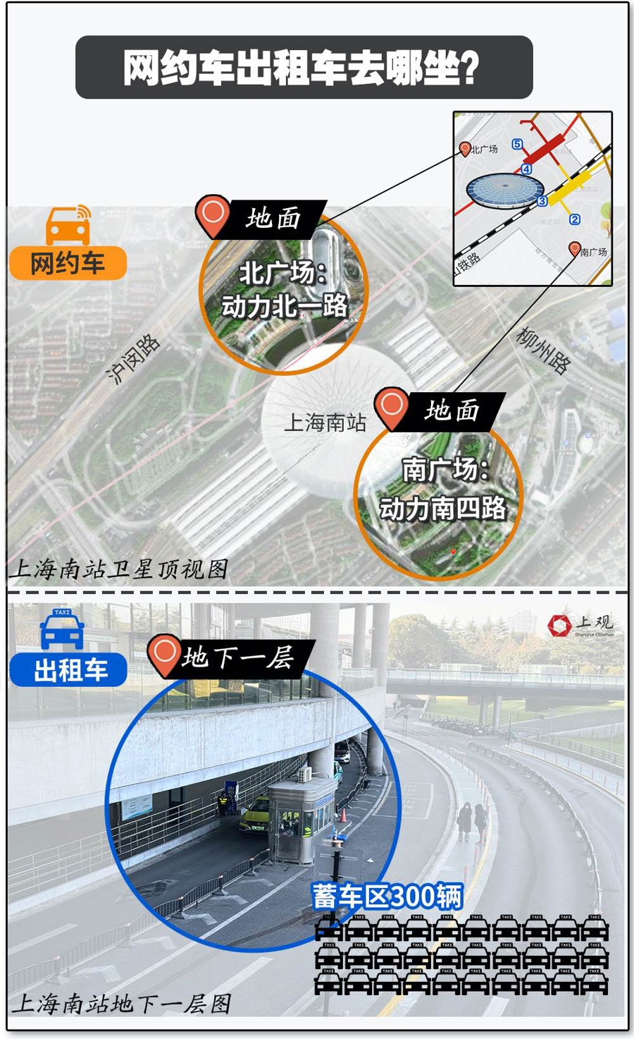 南北广场都设置了网约车电子围栏,要看清2处上客绿点