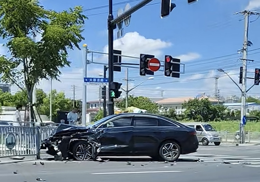 松江区一路口发生两车相撞事故涉事车辆不同程度受损