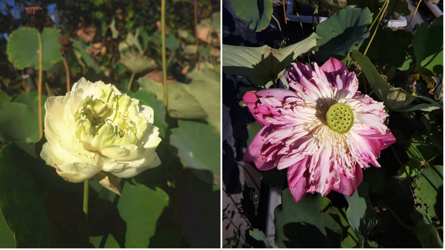 10月9日辰山植物园内的“至高无上”(图左)和“赛凌霄”,有的是夏荷延长了花期,有的本就是夏秋两季都开的品种,具体花期是否异常,还要看是什么品种。