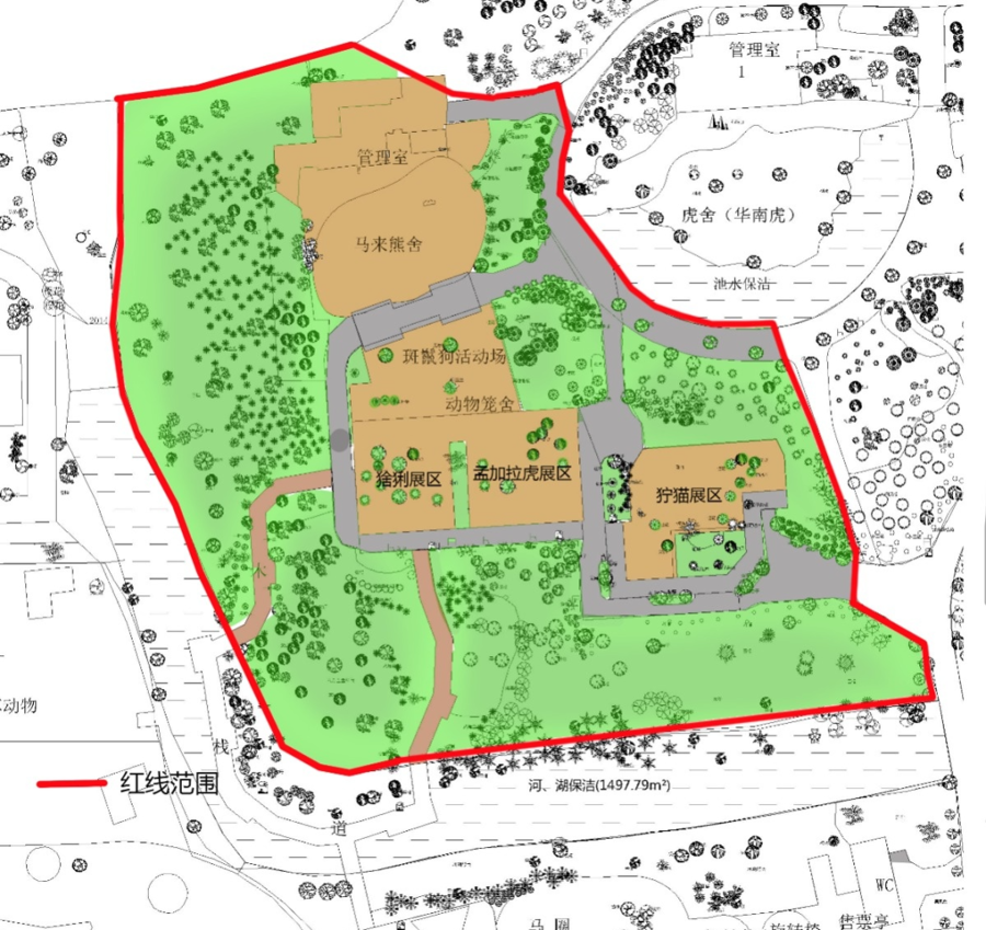 中型猛兽展区改造项目施工范围。 图片来源:上海动物园