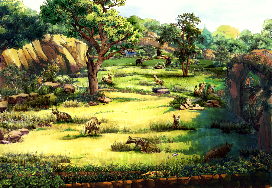 鬣狗活动场效果图。 图片来源:上海动物园