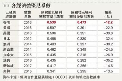 香港基尼系数为所有发达经济体之最(图/香港特区政府统计处)