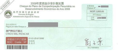 2008年度现金分享计划支票