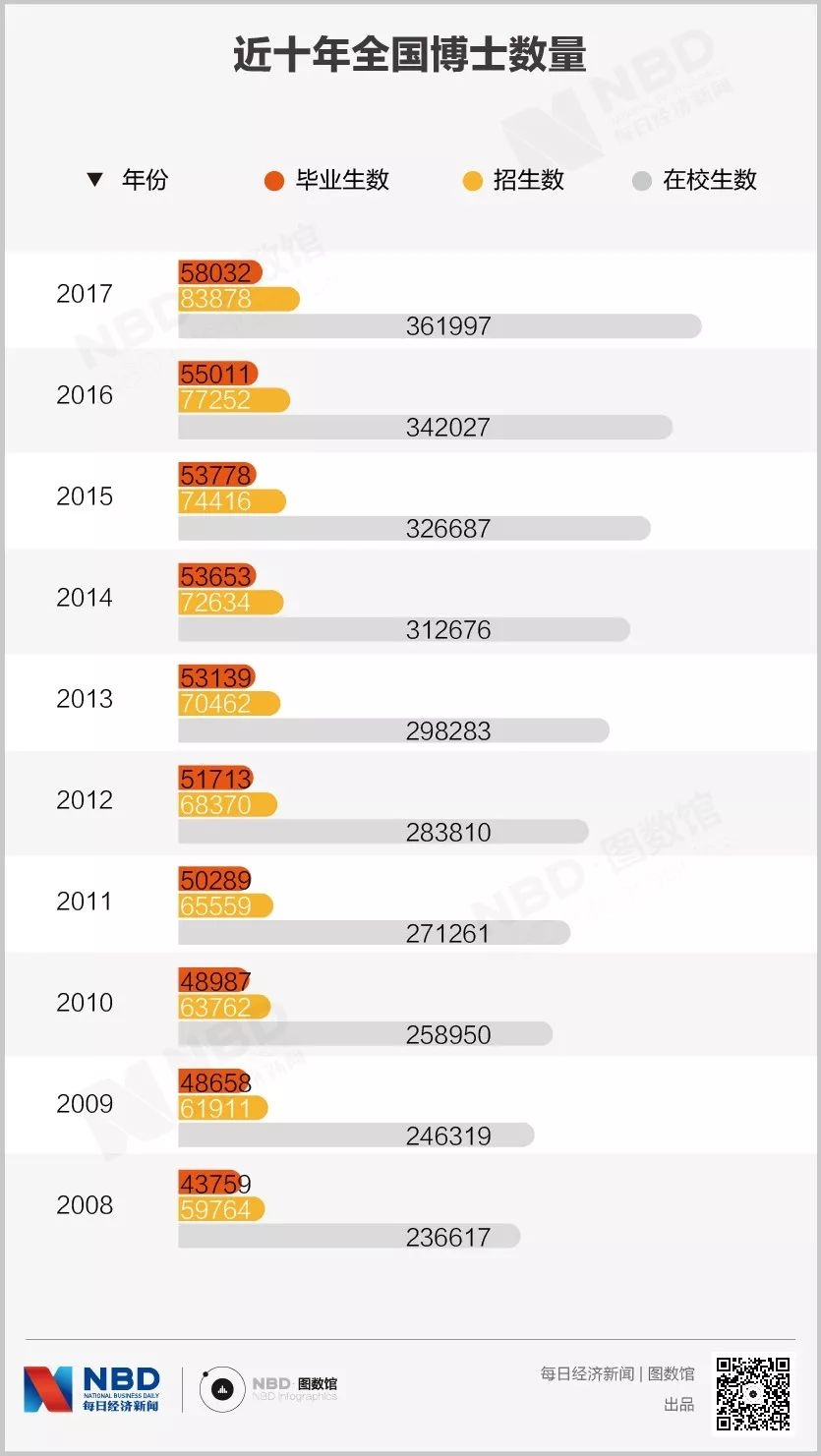 《中国教育统计年鉴》近年来的研究数据也显示,博士延期毕业率高于56%,也就是一半以上的博士都不能正常毕业。