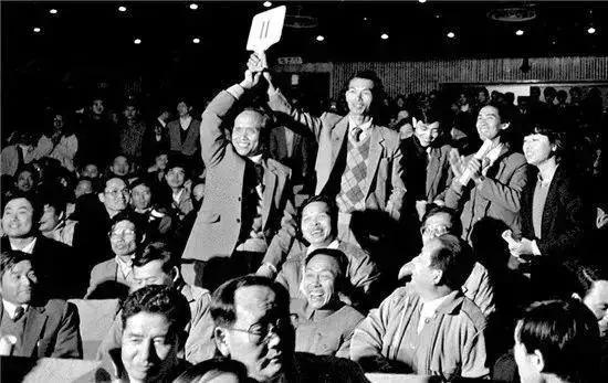 1987年12月1日,原深房公司总经理骆锦星(前)举起11号牌,以525万元拿下中国土地“第一拍”,后来深房公司在竞得的这片土地上修建了东晓花园。(报告附图)