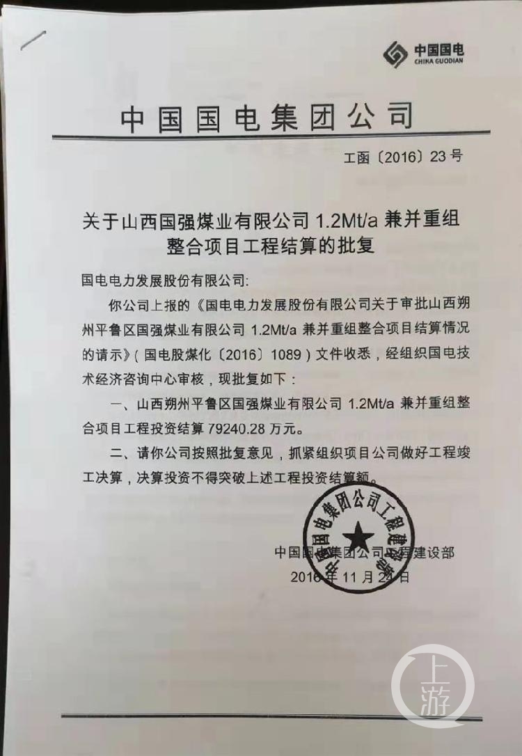 国电集团批复的文件显示,国强煤业1.2Mt/a兼并重组整合项目工程投资结算为7.92亿元。摄影/上游新闻记者 牛泰