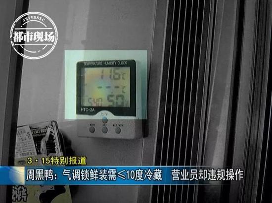 按照规定, 冷柜温度必须保持在10度以下。但记者发现,有多次超过这一温度的情况,有时晚上员工会直接关闭冰柜。