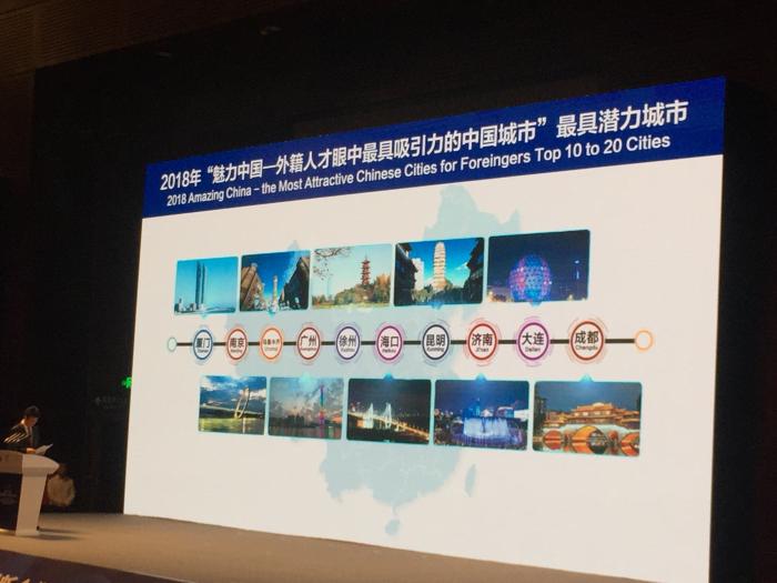 此外,今年还发布了2018年“魅力中国——外籍人才眼中最具吸引力的中国城市”最具潜力城市,前十强分别为厦门、南京、乌鲁木齐、广州、徐州、海口、昆明、济南、大连和成都。