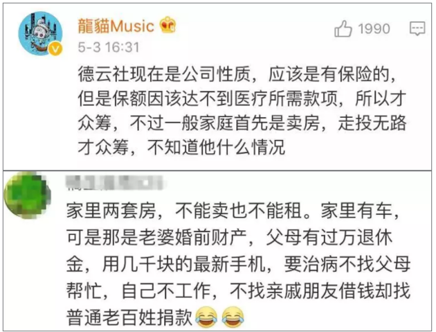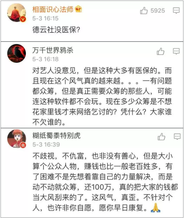 也有网友觉得可以用医保,很反感这种众筹的风气