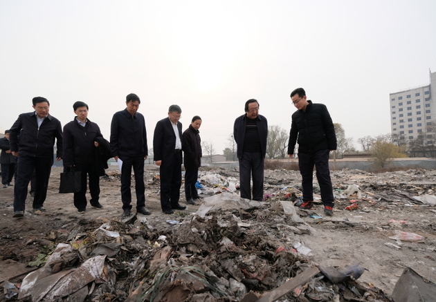 中央第二生态环境保护督察组在太原市潇河岸边检查废渣堆存情况 图片来源:生态环境部