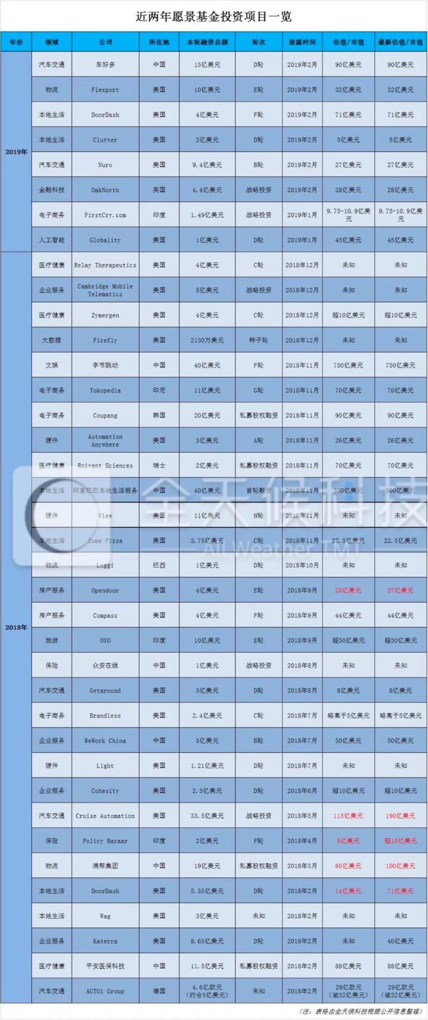 愿景基金主要投资品牌一览,图片来源:软银官方披露
