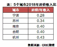 从房价收入比来看,宁波、苏州分别为0.28和0.34,相对处于合理的水平,南京、合肥、杭州的房价对于城镇居民收入而言压力较大。