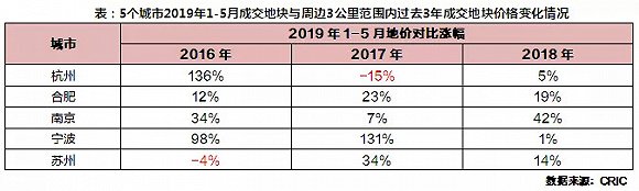 宁、甬、合地价三年新高