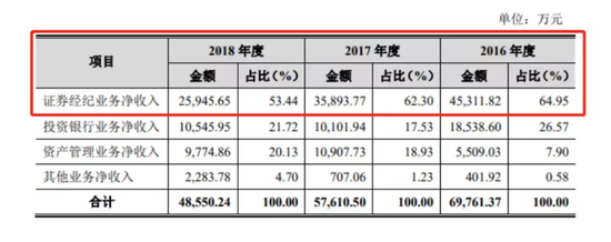 |   来源:中国基金报记者   广州或将迎来第二家上市券商:万联证券。   近日,证监会官网显示,万联证券《首次公开发行股票并上市》申请材料已被证监会接收。   目前,尚有中泰证券、中银国际证券、国联证券(中止审查)、东莞证券(中止审查)等券商在排队上市中。   万联证券究竟情况如何?我们一起来看看它的招股说明书吧。   2018年净利2.54亿元   同比下滑近2成   招股书显示,万联证券2016年、2017年、2018年营收分别为11.3亿元、11亿元、11.09亿元;   2018年归属于母公司股东的净利润仅为2.54亿元,同比下降18.32%。2016年、2017年分别为3亿元、3.11亿元。   净利润下滑的原因,万联证券表示,公司手续费及佣金净收入、投资收益和利息净收入是营业收入的重要组成部分,而这块收入与我国证券市场景气程度相关性较高。2018年,公司手续费及佣金净收入48,550.24万元,较2017年减少9,060.26万 元,降幅为15.73%,主要是由于2018年证券市场走势持续低迷,公司证券经纪业务净收入同比有所下降。   经纪业务占比31%   在收入结构中,证券经纪业务是万联证券核心业务之一。此外,信用业务和自营业务营收分别占比20%以上。   1.经纪业务   2018年,万联证券的经纪业务营业收入为3.4亿元,在收入结构中占比最大,近31%。   不过,2016年、2017年,经纪业务占比更高,分别为51%和42%。   因而万联证券表示,目前,公司正在探索经纪业务朝财富管理方向转型。   报告表示,公司经纪业务收入与代理交易额、佣金率水平密切相关,市场交易量波动、交易佣金率变化等因素均可能导致公司证券经纪业务增速放缓或下滑,从而给公司带来经营风险。此外,我国证券行业竞争加剧可能导致本公司经纪佣金费率进一步降低,因而对公司的经纪业务造成不利影响。   随着市场竞争的加大,通道佣金持续下滑,传统以通道佣金收入为主的经营模式受到挑战。目前,公司正在探索经纪业务朝财富管理方向转型,寻求差异化的定价方向,但市场尚未有成熟的经营模式可供借鉴,本公司的财富管理转型仍然在探索中。   2.自营业务   第二大业务是证券自营业务,万联证券主要从事固定收益类证券交易、权益类、衍生产品的交易以及做市业务。2018年营收近约3亿元,占比27%,高于2017年16%的水平。   3.信用业务   2018年,信用业务收入2.37亿元,占比21%,略低于2017年的23%。   万联证券的证券信用业务主要包括融资融券业务及股票质押式回购交易等业务。万联证券表示,证券信用业务受到多方面风险因素影响,因市场价格急剧下跌导致担保证券平仓后所得资金不足偿还融资欠款的市场风险和信用风险;此外,公司对客户信用账户强行平仓可能引致的法律纠纷风险,进而可能使公司相关资产遭受损失。同时,随着利率市场化逐步推进和市场竞争日趋激烈,融资融券利息收入存在下降的可能。   以华南为中心   全国70家营业部   万联证券是广州市属全资国有证券公司,于2001年8月23日经中国证监会批准设立,现有注册资本59.54亿元。公司总部设在广州市,扎根珠三角,在全国主要省份、直辖市及经济活跃的城市均设立了分支机构,形成了以华南为中心、辐射全国的营业网点布局。   万联证券2018年报显示,该公司在北京、上海、广东、湖南、四川等24个省市地区设立了70家证券营业部。其中广东省内达到 27 家,占比为36.99%。   截至2018年末,万联证券共有员工1667人。   广州金控持股75.99%。   万联证券的股权结构比较简单,控股股东为广州金控,其直接持有万联证券49.10%;此外,广州金控通过广永国资间接持有万联证券的比例为26.89%,合计持股比例为 75.99%。