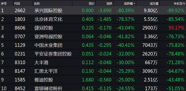 |  7月8日,A股三大股指均大跌超2%,两市成交额超4600亿元,3300余股下跌,北上资金净流出33亿元。同样暴跌的还有港股,恒生指数(28331.69,-443.14, -1.54%)一度大跌2%,蓝筹权重股现集体下跌,市场全日表现低迷。   截至收盘,恒生指数跌1.54%,报28331.69点,挫逾440点。恒生国企指数跌169.90点,收于10725.20点,跌幅1.56%。   对于后市,渤海证券研报指出,与全球市场比较,港股的估值相对较低。判断港股处于第十轮牛市初期,等待流动性继续宽松和盈利探底回升,对后市展望持乐观态度。   多只低价股闪崩   个股方面,恒指成份股中只有金沙中国飘红;吉利汽车(12.16, -0.52,-4.10%)、华润置地(34.2, -1.45, -4.07%)跌超4%;腾讯控股(351,-8.80, -2.45%)大跌2.45%;安踏体育(51.25, -4.05, -7.32%)遭做空,股价大跌7.32%领跌恒生国企指数。   值得注意的是,港股市场细价股再掀闪崩潮,多家公司大幅下跌,其中承兴国际控股(0.9, -3.69, -80.39%)(02662.HK)暴跌80.39%,北京体育文化(0.405, -1.49, -78.57%)(01803.HK)跌超78%,倢冠控股(0.225,-0.17, -43.04%)(08606.HK)及亚洲电视控股(0.064, -0.05, -41.82%)(00707.HK)跌超40%。   承兴国际控股的实控人是A股上市公司博信股份的董事长罗静(600083)。7月5日午间,博信股份发布公告表示,公司实际控制人兼董事长罗静、董事兼财务总监姜绍阳分别于2019年6月20日、2019年6月25日被上海市公安局杨浦分局刑事拘留,相关事项尚待公安机关进一步调查。自7月4日开始,承兴国际控股股价遭遇连续重创,当天该股下跌16.14%,次日股价下跌8.93%。而就在4月15日,承兴国际控股还曾创下历史高点,短短几天时间,承兴国际控股已沦为“仙股”。   对于北京体育文化股价“断崖式”暴跌,市场初步判断,可能为近期公司独董减持所致。北京体育文化产业集团有限公司(原名:瀚洋物流控股有限公司)是一家投资控股公司,主要从事于批发市场提供空运服务业务,子公司有瀚洋货运有限公司、瀚洋物流有限公司及溢利物流有限公司。2012年在香港联交所上市交易。港交所权益资料显示,北京体育文化独立非执行董事潘立辉于6月25日在场内以每股平均价2.0484港元减持33万股,约67.6万港元。减持后,潘立辉的最新持股数目为347600股,持股比例由0.05%降至0.03%。   可见的是,发生暴跌的多为小票,而雅迪控股(1.68, -0.56, -25.00%)(01585.HK)则是暴跌前十名中市值最大的一只,暴跌前的市值为67.2亿港元。该股在上午10时左右跌幅达60%,截至午间收盘跌约31%。收盘时跌幅收窄,跌25%,报收1.68元,并获得了5200.42万港元的南下资金抄底。公司午间公告称,经作出一切有关公司于合理情况下之查询后,董事会确认,公司处于正常运营,其并不知悉有关该等股价或成交量变动之任何原因。   安踏体育(2020.HK)股价跳水。受浑水沽空的影响,早间开盘,安踏股价一度下探8.14%,午后临时停牌前,安踏股价报51.25港元,跌幅为7.32%,总市值跌破1400亿港元。   7月7日,浑水发布针对安踏的做空报告,指安踏通过控制大多数的一级分销商捏造利润。   针对浑水对安踏体育的做空报告,安踏投资者关系部回应称:“待澄清公告及复牌之后再进一步和大家说明。”   美国劳工数据降低美联储降息预期   “目前看起来可能是受到A股下跌的拖累,这个周末消息面都比较负面影响,美国非农数据回升、加息预期下降,美国周五走弱;科创板即将开市、市场担忧资金分流,都是情绪面的影响,但没有看到什么个别的风险事件。”对于港股走低的原因,渣打中国财富管理首席投资策略师王昕杰对澎湃新闻记者表示。   泓瑞源金融证券持牌负责人岑智勇认为,首先是投资者憧憬美国减息的幅度或减少,利淡股市。此外,A股走势偏软,也拖累港股表现。   7月5日,美国劳工部发布数据,6月新增非农就业人数高达22.4万,远高于上月修正后的7.2万人,显示美国劳动力市场并未失去动能,这使得5月数据更可能是一个意外。6月失业率虽然上升了0.1个百分点至3.7%,但主要由于劳动参与率由62.7%上升至62.8%所致。   除了新增就业人数超出预期之外,其他方面的失业数据却弱于预期。6月美国失业率升至3.7%,预期和前值都是3.6%,这应与劳动参与率上升有关。6月劳动参与率升至62.9%,前值和预期值为62.8%。薪酬方面,6月平均每小时薪资月率增长0.2%,预期增长0.3%,前值修正为增长0.3%;美国6月平均每小时薪资年率增长3.1%,预期增长3.2%,前值增长3.1%。   由于5月非农数据远低于预期,以及物价数据持续低于2%的目标水平,市场对于美联储下半年降息的预期不断升温。此前,市场对美联储降息预期十分强烈。但6月非农数据似乎又带来变数,由此引发了美股集体走低和周一亚太股市的抛售潮。   内房股调整   港股调整的另一个原因可能是内房股的回调。   据央行旗下《金融时报》报道,银保监会近日表示,为加强房地产信托领域风险防控,针对近期部分房地产信托业务增速过快、增量过大的信托公司,银保监会近日开展了约谈警示,要求这些信托公司控制业务增速,提高风险管控水平。   多位业内人士预计,房地产信托领域强监管之下,房地产信托业务可能会有所波动。   申万宏源(2.6, -0.03, -1.14%)证券分析师孟祥娟表示,虽然6月前两周房地产信托发行规模尚可,但后两周明显后劲不足,第四周房地产信托发行规模环比下降35%,房地产信托监管政策收紧效果开始显现。   受此消息影响,内房股7月8日迎来了一波回调。嘉年华国际(0.021,-0.00, -8.70