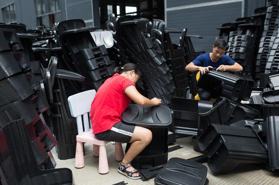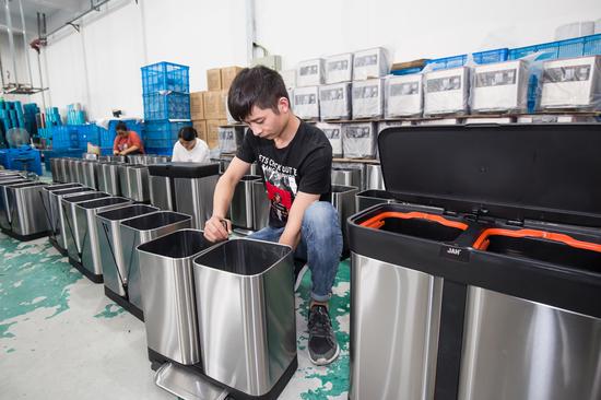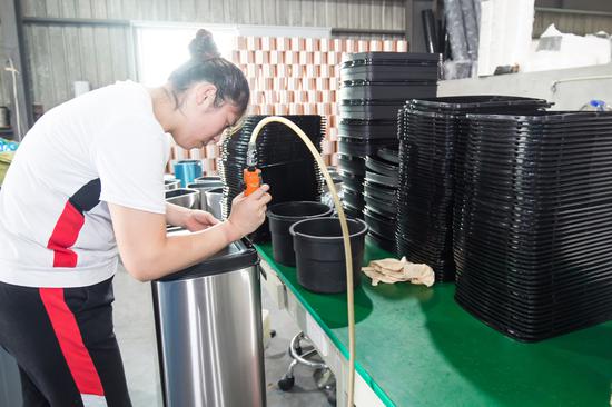 |   台州黄岩塑料制品企业加班加点赶制分类垃圾桶。  本文图均为 中新网 图   近一个月来,在塑料制品产量占全国七成的浙江台州市,众多塑料垃圾桶企业因《上海市生活垃圾管理条例》的实施而销量大增。   “塑料垃圾桶厂家的销量几乎都翻倍,八成订单来自上海。”7月8日,台州市塑料行业协会副秘书长吴丹萍告诉澎湃新闻(www.thepaper.cn):“采购商的货车就在工厂等着,产品下了生产线,来不及进仓库就直送上海。”   7月,实行“史上最严”分类制度的《上海市生活垃圾管理条例》实施。同期,住建部宣布全国46个重点城市都将逐步实施垃圾分类。   淘宝网向澎湃新闻提供的数据显示,6月垃圾桶销售量达300万件。特别是“分类垃圾桶”,6月的搜索量同比增长30倍,销售额增长5倍,生产地以台州(塑料材质)和广东江门、佛山(不锈钢材质)为主,上海用户占85%。   “6月原本是淡季,但今年我们加班加点全天生产,把别的塑料产品生产线停了,全力生产分类垃圾桶,每天出货1万多只还供不应求。”航星塑料模具厂常务副总经理唐传余表示。   “来自上海的分类垃圾桶订单年初开始增多,近一个月井喷,约占订单总数的80%。”唐传余告诉澎湃新闻。 |