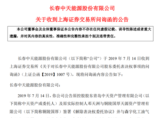 新浪财经讯 7月14日消息,中天能源(3.180, -0.04, -1.24%)7月14日晚间收到上交所问询函,要求公司补充披露森宇化工的基本情况,包括但不限于主营业务、历史沿革、控股股东和实际控制人的基本情况、股权结构图(穿透至自然人或国资委)、主要财务指标(包括但不限于总资产、净资产、营业收入、净利润)等。