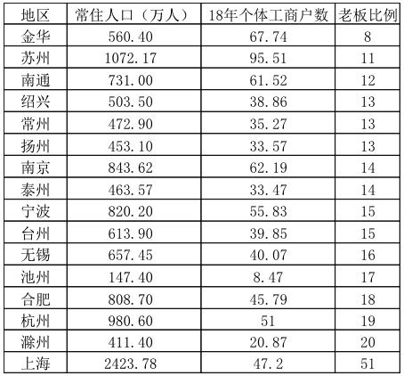 浙江金华老板比例最高;苏南城市“老板”数量大、增速高,表现尤为突出。
