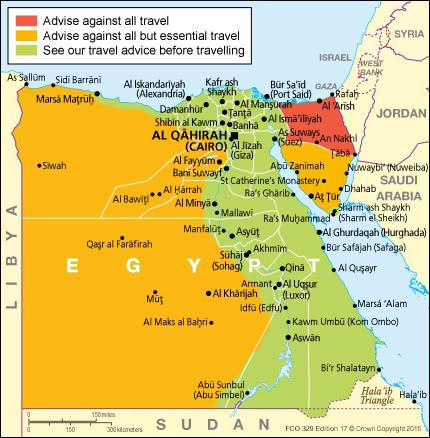英国政府称,恐怖分子“极有可能试图在埃及发动袭击。虽然大多数袭击发生在西奈半岛北部,但埃及全国各地都有发生恐怖袭击的风险。”