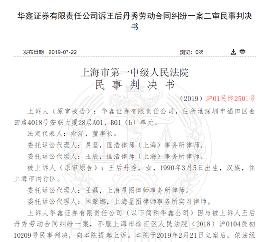 |   新浪财经讯 近日,裁判文书网公布了两则民事判决书,华鑫证券员工王某某因合同期满后被解雇。王某某申请仲裁要求华鑫证券支付各项费用48万,但仲裁结果仅支持了不足一万。王某某提起诉讼,最终法院判决华鑫证券支付王某某11万元。   合同期满被辞退 申请仲裁索要48万   2015年6月至7月期间,王某某因被华鑫证券南京中山北路营业部招录在此营业部工作。   2015年8月,王某某调至华鑫证券,双方签订了有效期为2015年11月9日至2016年12月8日的劳务合同,约定试用期2个月。王某某于新三板业务管理总部担任挂牌推荐岗位。上述合同期满后,双方又签订了有效期为2016年12月16日至2017年12月15日的劳动合同。   2017年12月20日,华鑫证券人力资源部向王某某发送短信及微信,告知其劳动合同已于2017年12月15日到期,要求王某某在2017年12月22日前到人力资源部办理离职手续并签订相关协议,并称公司将依法给予经济补偿。华鑫证券于同日取消了王某某的考勤权限。   但王某某于2017年12月18日、19日依旧前往华鑫证券工作。王某某提供证据显示,其所在团队的同事刘某2017年12月18日还发送微信与自己沟通工作。   2017年12月25日,王某某向华鑫证券发送电子邮件,称自己2015年8月至2015年11月间一直在华鑫证券工作。希望华鑫证券支付2015年8月的工资7650元,而9月至11月则应支付其双倍工资。   2018年1月8日,华鑫证券向王某某邮寄劳动合同到期不续签通知书,表明公司已经多次通知其劳动合同到期事宜。2018年1月11日,王某某签收了这份通知书。   2018年1月24日,王某某申请仲裁,要求华鑫证券支付:解除劳动合同赔偿金6.41万元;2015年6月1日至11月30日工资4.59万元;2015年7月1日至11月16日未签订劳动合同双倍工资差额3.42万元;2017年度年终奖3万元;2016年度及2017年度未休年假的折算工资共计0.88万元;2017年11月的报销款0.15元;2015年8月1日至2017年12月20日工作日及周末加班费29.6万元以及支付2018年1月5日至3月4日延误退工经济损失0.33万元,共计48.38万元。   2018年2月7日,华鑫证券提出反申请,要求王某某返还2017年12月16日至12月31日工资0.36万元并填写项目交接表、返还门禁卡及饭卡。   对于上述申请,仲裁委员裁定:   华鑫证券支付王某某2017年度年终奖2万元,2017年度未休年休假折算工资0.36万元,2017年11月报销款0.15万元,2015年11月9日至2017年12月20日工作日及休息日加班工资0.09万元,2018年1月5日至3月4日延误退工的经济损失0.33万元,共计0.93万元。   王某某返还2017年12月16日至12月31日的工资0.34万元;返还门禁卡及饭卡,并配合华鑫证券填写项目交接表。   部分主张获法院认可 获赔金额提高10万   王某某对仲裁结果不满,向法院提起诉讼。主张华鑫证券支付违法解除劳动关系赔偿金6.41万元,2015年6月1日至11月8日工资4.04万元,2017年度年终奖3万元;不返还华鑫证券2017年12月16日至12月31日工资0.34万元。   王某某向法院提交了2015年6月3日至10月12日与华鑫证券南京中山北路营业部时任负责人曹某和华鑫证券管理人员秦某等人的邮件往来,以证明自己自2015年6月起便提供劳动。   工资单显示,2015年12月至2017年12月王某某每月基本工资7000元,其他补贴450元(2015年12月及2016年1月该项金额为650元),另有金额不等的福利费及奖金等。   华鑫证券则表示,王某某开始在华鑫证券南京中山北路营业部学习,2015年8月至华鑫证券总部学习,华鑫证券南京中山北路营业部系其分支机构,工资虽由华鑫证券核算,但通过该营业部自行发放。华鑫证券还表示,王某某工作至2017年12月15日,此后其即便到过华鑫证券,也未提供劳动,因XX项目系王某某经手,故刘某在2017年12月18日通过微信询问相关情况。   而双方签订的劳动合同并无年终奖约定,年终奖属于业绩薪酬,根据《员工手册》之规定与公司业绩完成情况、部门绩效等均挂钩。   一审法院审理后认为,王某某2015年6月至7月在南京中山北路营业部招录,2015年8月1日起王某某调入华鑫证券,因此王某某主张2015年6月至7月工资一审法院不予支持。2015年8月1日至11月8日,通过电子邮件可以看到王某某在为华鑫证券工作,华鑫证券应当支付王某某2015年8月1日至11月8日2.48万工资。   劳动合同期满后,劳动者仍在原用人单位工作,原用人单位并未表示异议的,视为双方同意以原条件继续履行劳动合同。2017年12月20日,华鑫证券与王某某解除事实劳动关系,不存在合同期满终止条件,因此华鑫证券据此解除劳动合用缺乏依据,应当支付解除劳动关系赔偿金5.34万元。   年终奖方面,双方确认王某某2015年和2016年的年终奖均为3万元,华鑫证券主张2017年王某某的年终奖为2万元,但并未提供相应证据,因此王某某2017年的年终奖应按3万元发放,按照其在职时间,华鑫证券应支付王某某2017年年终奖2.91万元。 |