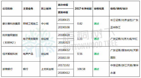 8月29日,发审委审核4家公司的IPO申请,审核结果是皆大欢喜,浙商银行、豪尔赛科技、杭州壹网壹创、佳禾智能科技等4家公司全部过会。4家公司中,杭州壹网壹创、佳禾智能科技的保荐机构均为广发证券(13.310,-0.02, -0.15%)。
