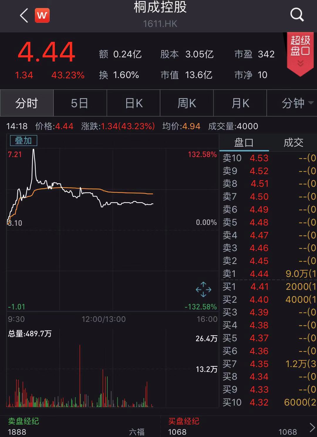 9月10日,桐成控股(01611.HK)发布公告称,委任李林为公司执行董事、董事会主席及首席执行官,自2019年9月10日起生效。同时,拟将公司名称变更为“火币科技控股有限公司”。受此影响,9月11日开盘,桐成控股股价高开高走,最高涨幅达到132.5%。