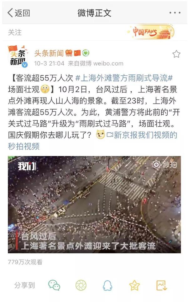 上海外滩因为“客流超过55万人次”曾飙升到微博热搜榜top5。