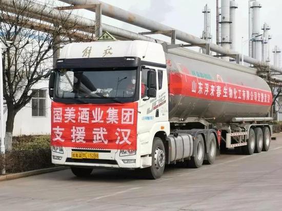 1月24日上午,国美酒业集团旗下的山东浮来春生物化工有限公司紧急进行酒精装车。当日下午1点,发往武汉的酒精罐车装车完毕,共计装车13吨医用消毒酒精,1月25日,该批酒精已运抵武汉,用于防控新型冠状病毒感染肺炎。