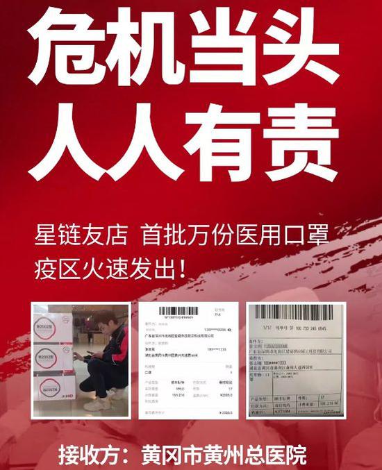1月26日,怡亚通星链平台首期捐赠1万份N95医用口罩已向疫区发出。同时,怡亚通星链平台发起“星链公益·共助武汉”公益项目,号召集团全体员工及各位会员、用户、社会各界爱心人士共同驰援武汉,抗击疫情。这是酒行业中第一家向疫区捐款捐物的供应链公司。