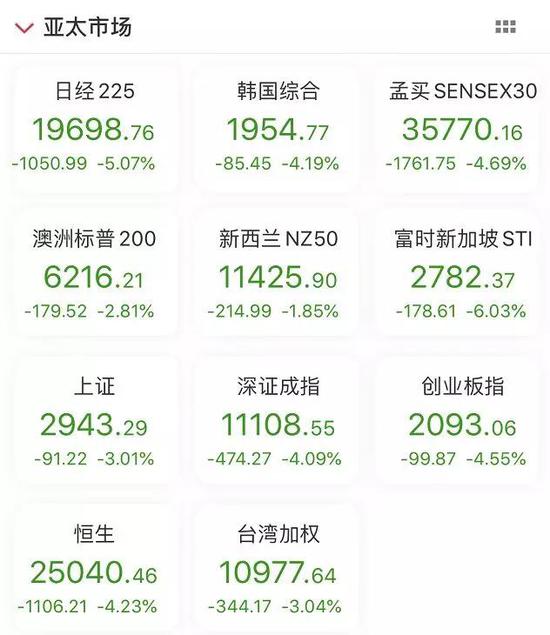 越南股市扩大跌幅至6.2%,创2001年10月以来最大跌幅。韩国KOSPI指数收盘下跌4.19%,创2019年8月以来新低。
