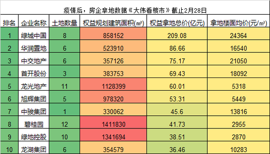 虽然2019年下半年房企资金链有所收紧,但整体看,疫情后房企拿地数量依然高位。