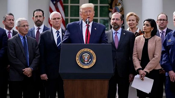 图:当地时间3月13日,美国总统特朗普在白宫宣布“国家紧急状态”,应对新冠肺炎疫情