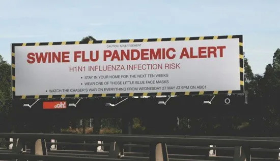 图:2009年H1N1流感最初被称为“猪流感”,图为当时在澳大利亚悉尼的户外广告牌
