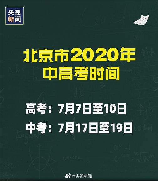 北京高考时间:7月7日-10日 中考时间7月17日至19日