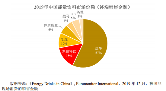 招股书显示,东鹏饮料面临着激烈的市场竞争。招股书显示,2019年国内能量饮料的市场份额呈现“一超多强”的格局。红牛以57%的市场占有率高居榜首,东鹏特饮以15%的市占率排名第二,与龙头差距较大。东鹏特饮不仅“前有强敌”,而且“后有追兵”,乐虎、体质能量分别以10%和6%的市占率紧随其后。