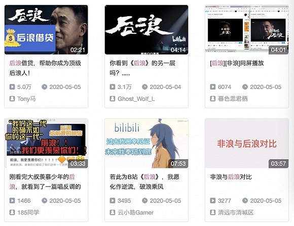 但《后浪》的营销还是有一些效果。5月4日美股开盘后,B站股价大涨近8%,盘后股价涨5.53%,报收26.53美元。截至发稿前,B站总市值达91.64亿美元,较前一天上涨4.8亿美元。界面新闻还观察到,目前《后浪》在B站位于排行榜第一,由UP主们创作的“后浪衍生作品”也越来越多。