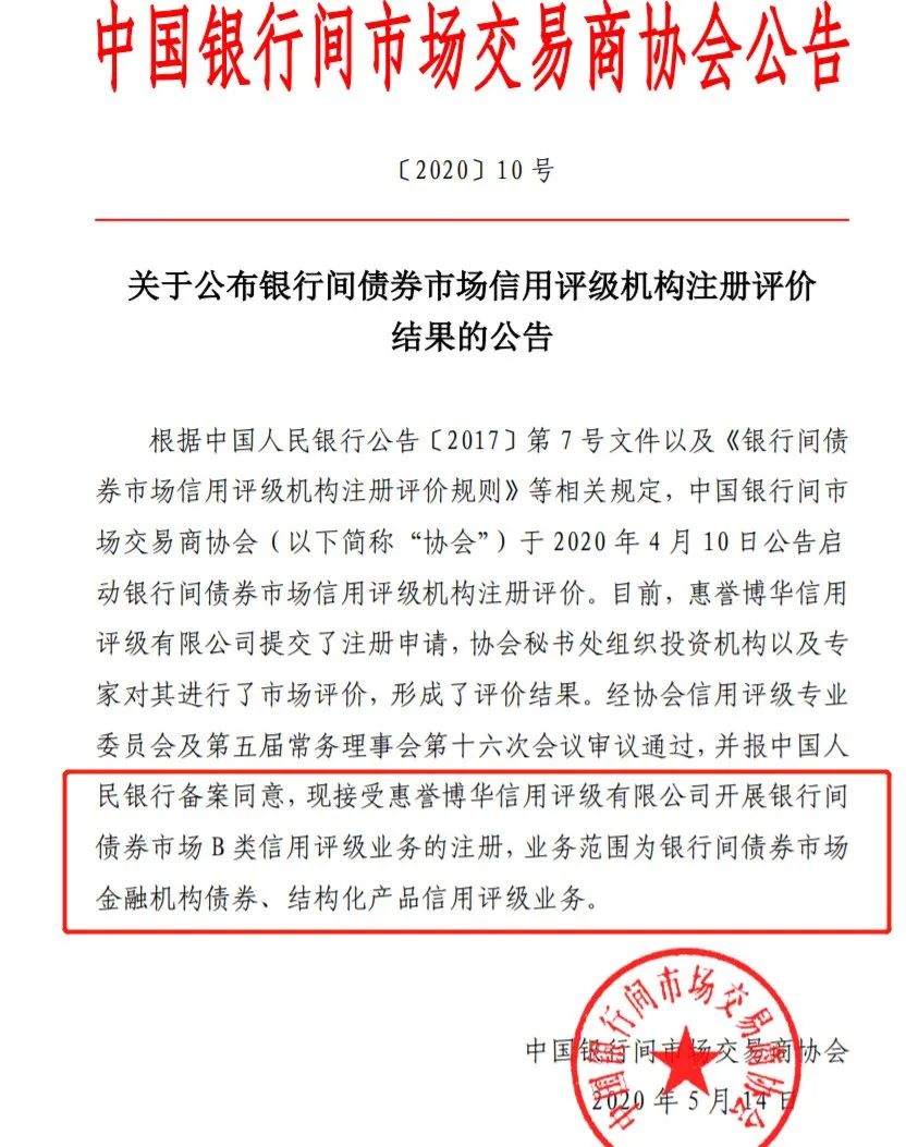 根据2018年3月银行间交易商协会发布的“银行间债券市场信用评级机构注册评价规则”,银行间市场的评级牌照分为两类,A类和B类。其中,A类信用评级机构可在银行间债券市场开展全部类别的信用评级业务,B类信用评级机构则在银行间债券市场开展部分类别的信用评级业务。此次惠誉博华获准开展的即是银行间债券市场B类信用评级业务的注册,业务范围为银行间债券市场金融机构债券、结构化产品信用评级业务。