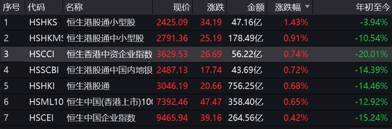 内资股成港股拉升急先锋。恒指宽幅震荡收涨0.1%,国企指数涨0.42%,红筹指数涨0.74%,港股通小型股更是大涨1.4%。科技网络、生物制药、消费股走强,香港本地股跌幅居前。